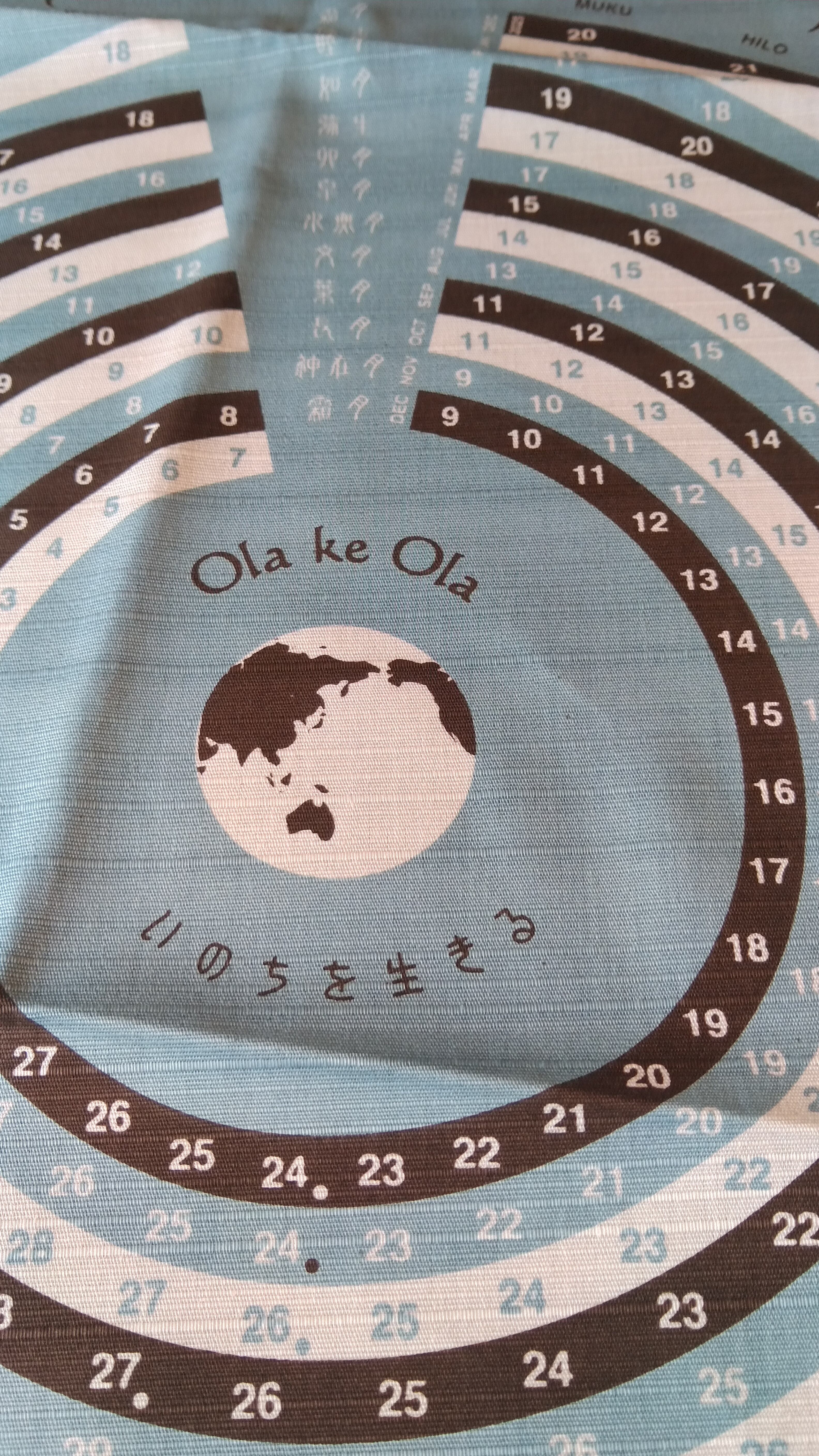 こちらは毎年色味やデザインが変わります。 素材は布(綿100%)の風呂敷生地にプリントをしたものです。年度中は暦として壁に掛け月の暦を感じていただき、その後は、お弁当を包んでみたりなどいかがでしょう。